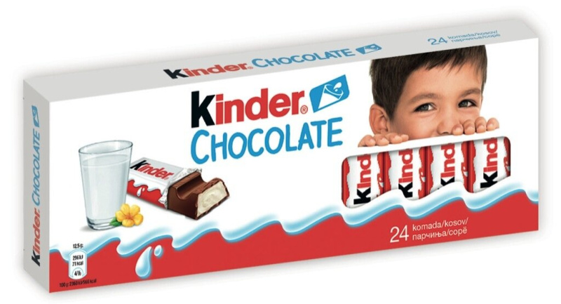 MLEČNA čokolada 40 % (sladkor, polnomastno MLEKO v prahu, kakavovo maslo, kakavova masa, emulgator: lecitini (SOJA); vanilin), sladkor, posneto MLEKO v prahu (18 %), palmovo olje, MLEČNA maščoba, emulgator: lecitini (SOJA), vanilin. Izdelek vsebuje: 33 % suhe snovi MLEKA, kakavovi deli: najmanj 13 %. MLEČNA čokolada: kakavovi deli: najmanj 30 %.