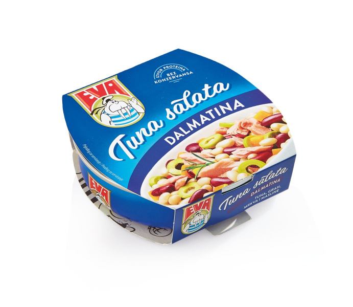 Zelenjava 57 % (beli fižol, korenje, rdeči fižol, rezane zelene olive), TUN (Katsuwonus pelamis) 26 %, repično olje 12 %, voda, kuhinjska sol, aroma, sredstvo za uravnavanje kislosti (limonska kislina).