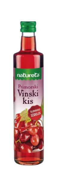 Rdeči vinski kis 6%, sestavine: vinski kis, voda, antioksidant: kalijev metabisulfit (žveplov dioksid)