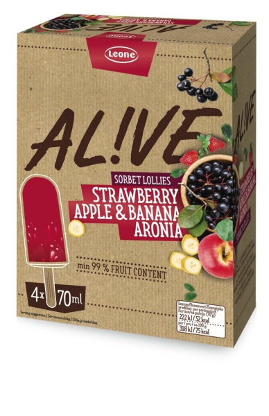 Sladoled na palčki, jagoda, jabolko, banana in aronija, AL!VE, 4 x 70 ml