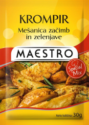 Morska sol, sušena zelenjava 18 % (čebula, listi peteršilja, korenje, ZELENA), sladkor, začimbe 11,2 % (sladka začimbna paprika, črni poper, kumina, muškatni orešček), koruzni škrob. Lahko vsebuje PŠENIČNO moko, MLEKO in JAJCA.