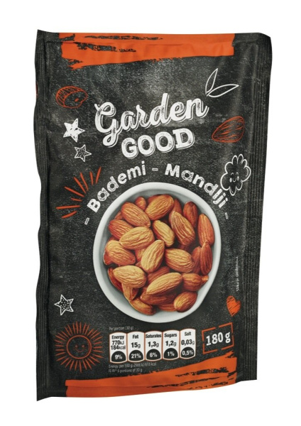 100 % MANDLJEVA jedrca. Lahko vsebuje sledi ARAŠIDOV, drugih OREŠKOV, glutena, SEZAMA in zrnja SOJE.