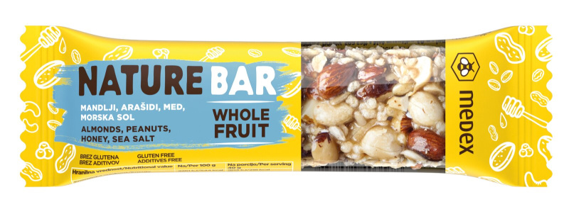Ploščica Nature, morska sol, med, mandlji in arašidi, Medex, 40 g