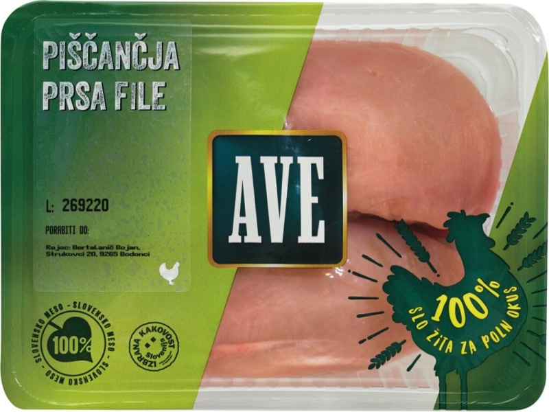 Piščančji file polovičke, brez GSO, Ave, pakirano, 500 g, IK