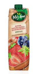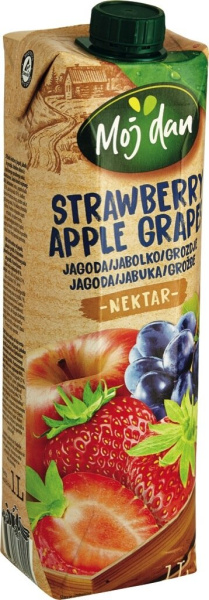 Voda, jagodna kaša 25 %, jabolčna kaša 18 %, sladkor, glukozni-fruktozni sirup, grozdni sok iz zgoščenega sadnega soka 2 %, kislina: citronska kislina.