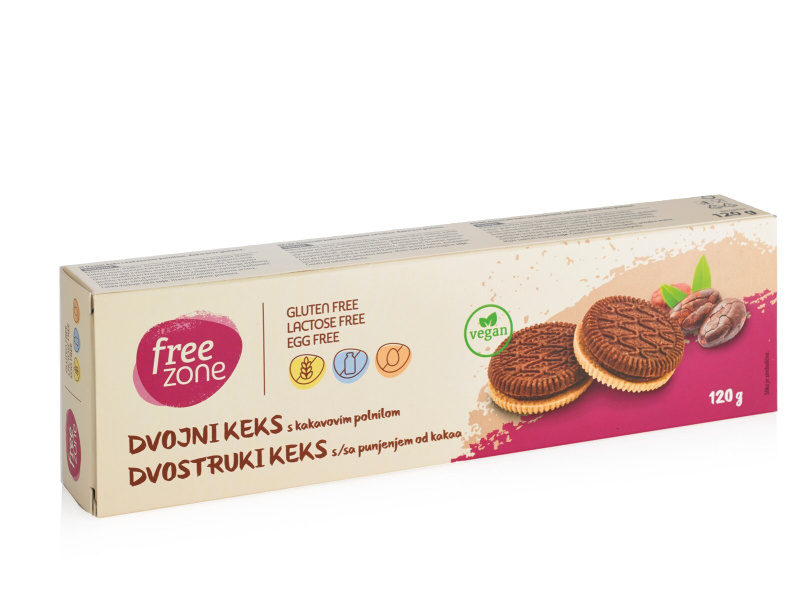 Dvojni keks s kakavovim polnilom, Free Zone, 120 g