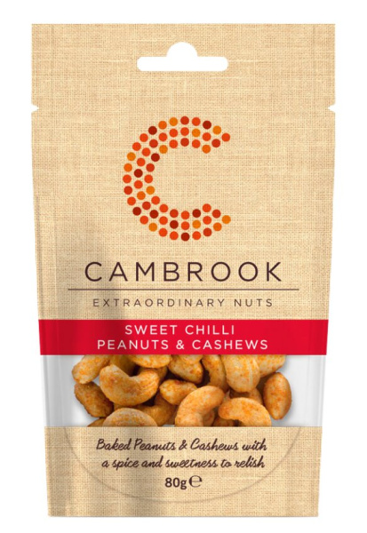 Arašidi in indijski oreščki s čilijem, Cambrook, 80 g