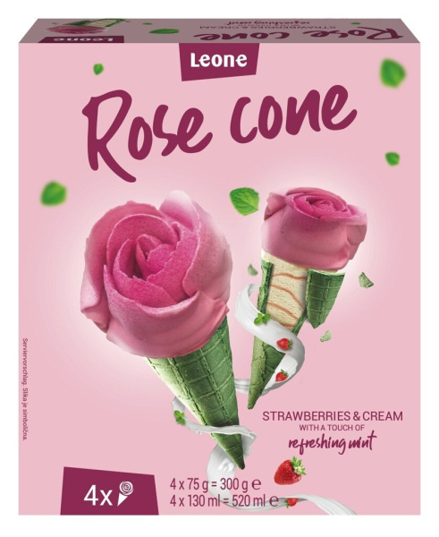 Sladoled kornet vrtnica, jagoda, Leone, 4 x 130 ml