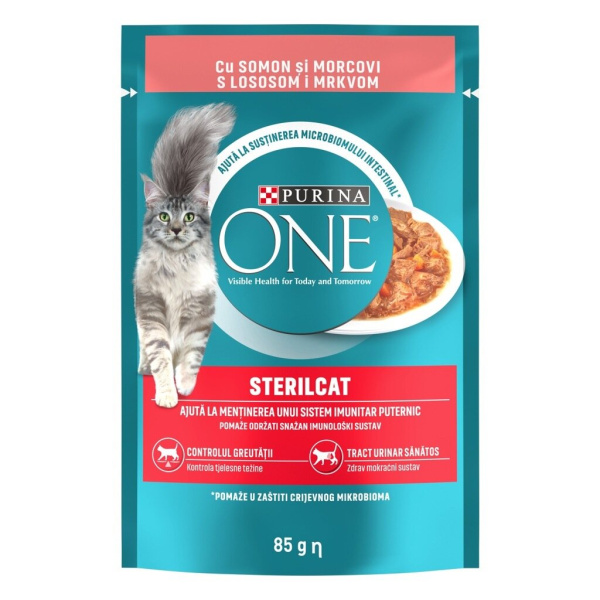 Hrana za mačke One Steril, piščanec, losos, korenje, 85 g