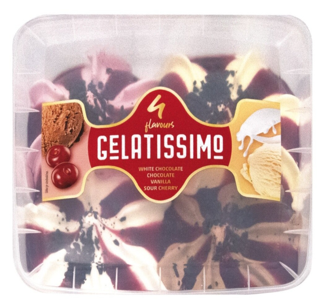 Sladoled, čokolada, bela čokolada, višnja in vanilija, Gelatissimo, 1650 ml