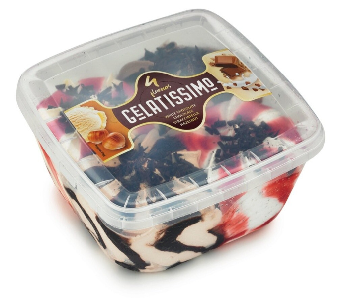 Sladoled, Čokolada, lešnik, bela čokolada in stracciatela, Gelatissimo, 1650 ml