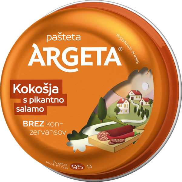 Kokošja pašteta s pikantno salamo, Argeta, 95 g