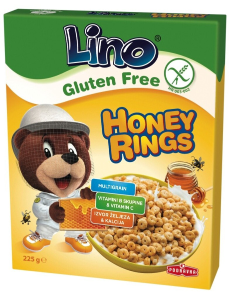 Žitarice brez glutena, medeni obročki, Lino, 225 g