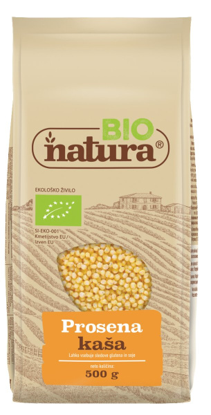 Oluščena bio prosena kaša. Lahko vsebuje sledi SOJE in žit, ki vsebujejo GLUTEN. *iz kontrolirane ekološke pridelave.