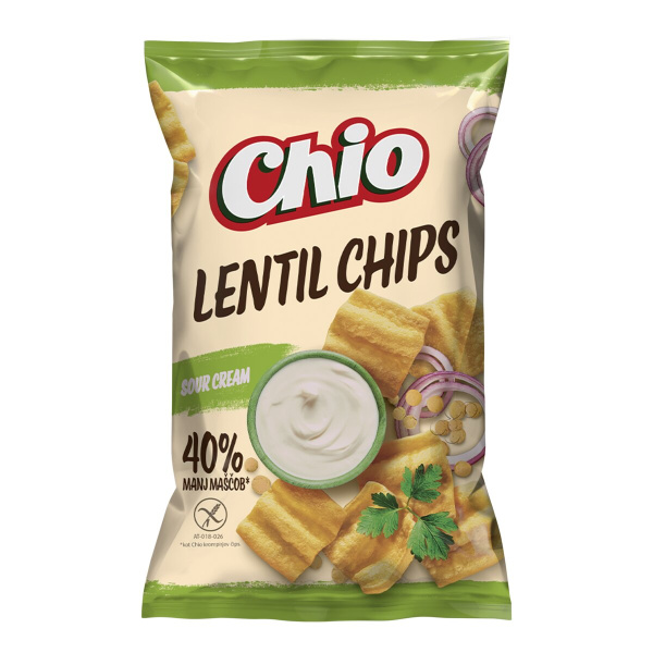 LEČINA MOKA (39%), RIŽEVA MOKA, KORUZNA MOKA, SONČNIČNO OLJE (16%), ŠKROB (KORUZA, KROMPIR), SOL, SLADKOR, MALTODEKSTRIN (KROMPIR), SIROTKA V PRAHU, NARAVNA AROMA, JOGURT V PRAHU, ČESEN V PRAHU, ČEBULA V PRAHU, ZELENI POPER. PAKIRANO V KONTROLIRANI ATMOSFERI.