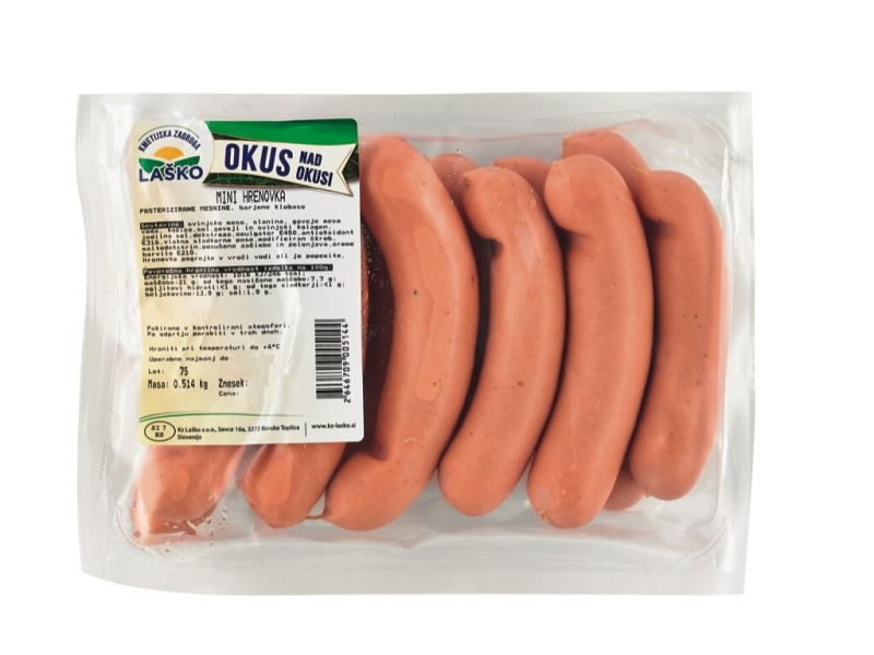 Mini hrenovke, Okus nad okusi, KZ Laško, pakirano, cena za kg, cca 500 g