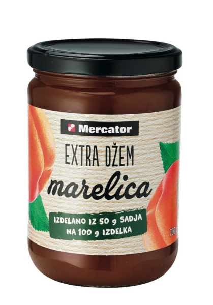 Extra džem, marelica, 50 % sadni delež, Mercator, 700 g