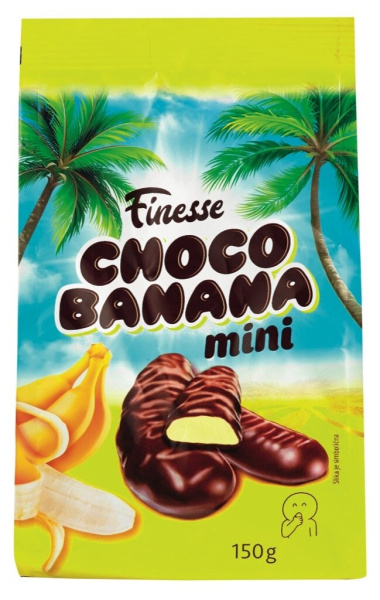 Glukozni sirup, sladkor, čokolada 25 % (sladkor, kakavova masa, kakavovo maslo, emulgator: lecitini (SOJA)), voda, bananina kaša 3 %, sredstvo za ohranjanje vlage: sorbitoli; želirno sredstvo: agar; kislina: citronska kislina; JAJČNI beljak v prahu, barvilo: kurkumin; aroma. Lahko vsebuje sledi MLEKA, OREŠKOV (LEŠNIKOV, MANDLJEV, PISTACIJE), ARAŠIDOV in glutena.