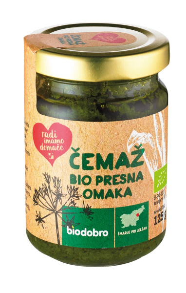Čemaž* 54 % iz naravnega rastišča, ekstra deviško oljčno olje*, hladno stiskano sončično olje*, himalajska kristalna sol. *iz kontrolirane ekološke pridelave. Lahko vsebuje sledi OREŠKOV.