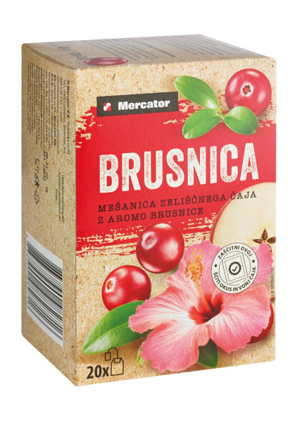 Cvetovi hibiskusa 40 %, plodovi divje jablane 25 %, plodovi šipka 19 %, aroma brusnice 6 %, plodovi črnega bezga 4 %, listi brusnice 3 %, plodovi brusnice 2 %, kislina: jabolčna kislina 1 %.