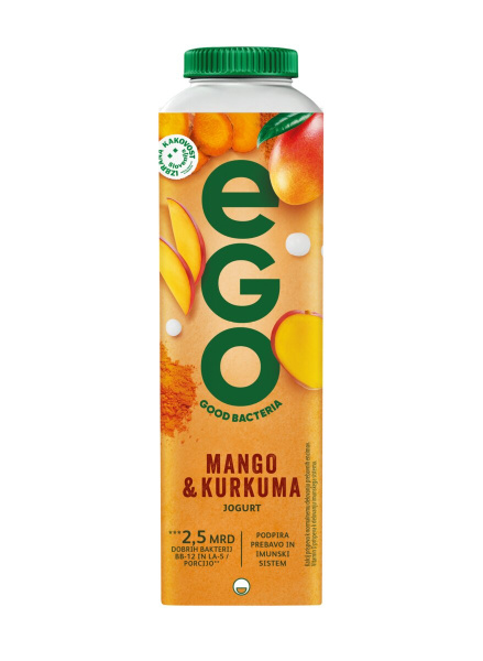Jogurt, mango in kurkuma, 1,3 % m.m., Ego, 500 g