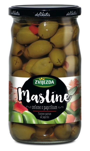 Zelene olive polnjene s pasto paprike, Zvijezda, 700 g
