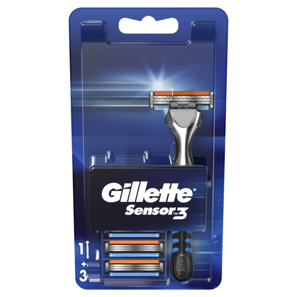 Ročni brivnik Sensor3 + 3 nastavki, Gillette