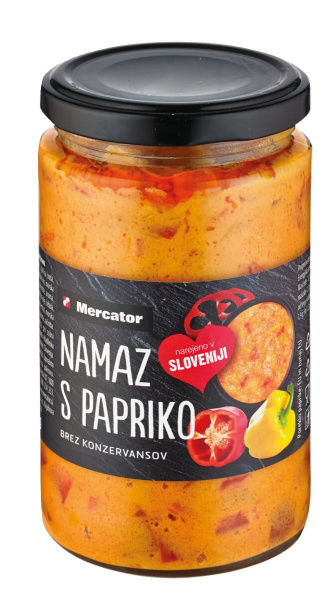 Paprika 64 %, GORČICA (voda, GORČIČNA semena, alkoholni kis, morska sol, vinski kis, sladkor, zacimbe, aroma,barvilo: riboavini), sončnično olje, čebula,sladkor, paradižnikov koncentrat, morska sol, kislina: ocetna kislina, aroma, začimba.