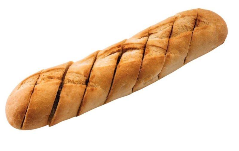 PŠENIČNA bageta 85% (PŠENIČNA moka, voda, kvas, sol, RŽENA moka, PŠENIČNI GLUTEN, sredstvo za obdelavo moke: askorbinska kislina, encimi: amilaza, hemicelulaza), nadev 15% (MASLO 75%, čebula, česen 6%, voda, sol, peteršilj, škrob, začimbe (črni poper, luštrek), SOJINA omaka (voda, SOJA, PŠENICA, sol), česnova aroma, sredstvo za uravnavanje kislosti: citronska kislina).
