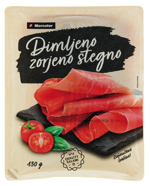 Narezek dimljeno zorjeno stegno, Mercator, pakirano, 130 g