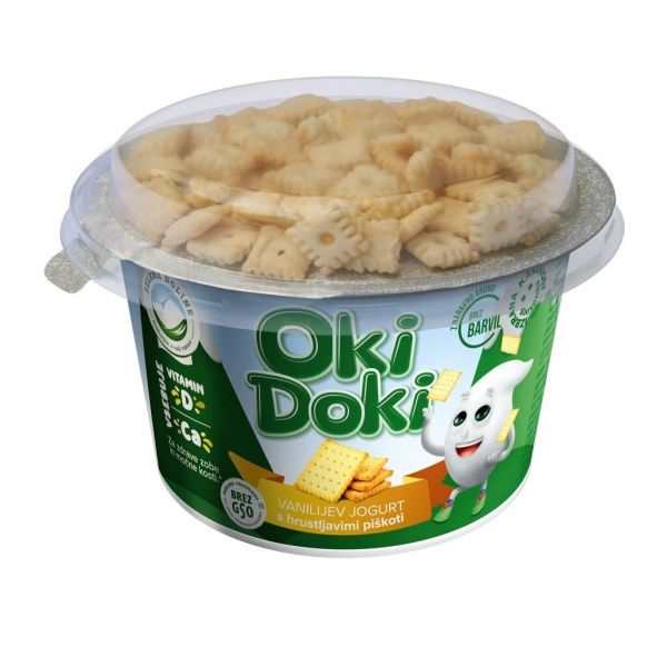 Vanilijev jogurt z maslenimi piškoti Oki Doki, Zelene Doline, 150 g