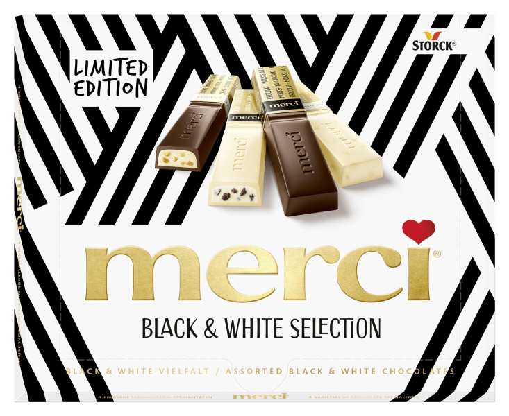Sestavine: sladkor, kakavova masa, kakavovo maslo, polno mleko v prahu, rastlinske maščobe (palmova, karitejeva), mandlji (5,2%), mleko v prahu z visoko vsebnostjo maščobe, topljeno maslo, posneto mleko v prahu, laktoza, izdelek iz sirotke, riževa moka, pšenična moka, emulgator: lecitini (soja), pinjenec v prahu, manj masten kakav, pšenične beljakovine, arome, sol, pšenični slad, sredstva za vzhajanje: amonijev hidrogenkarbonat, natrijev hidrogenkarbonat, kalijev karbonat. Kakavovi deli: najmanj 28% v beli čokoladi. Kakavovi deli: najmanj 50% v temni čokoladi.