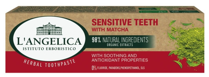 Zeliščna zobna pasta, občutljivi zobje, matcha, L'Angelica, 75 ml