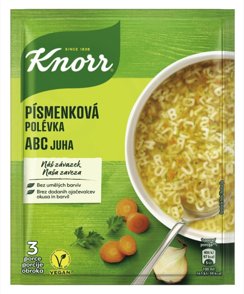 Testenine 80% (zdrob durum PŠENICE), jodirana sol (sol, kalijev jodat), škrob, izvleček kvasa, palmina maščoba, nadomestek soli (kalijev klorid), sol, čebula* 0,5%, SOJINA omaka v prahu [maltodekstrin, sol, SOJINA omaka (SOJA, PŠENICA)], aroma, korenje* 0,2% ,začimbe (semena ZELENE, muškatni orešček, kurkuma*, poper, česen* v prahu), listi peteršilja*, 0,1%, zgoščeni zelenjavni sok (čebula*, ZELENA*, korenje*, por*), sončnično olje. Lahko vsebuje žita, ki vsebujejo GLUTEN, GORČIČNA SEMENA, JAJCA in MLEKO. *iz trajnostnega kmetijstva.