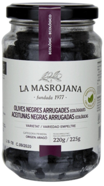 Bio suhe črne olive Empeltre z ekstra deviškim oljčnim oljem, La Masrojana, 220 g