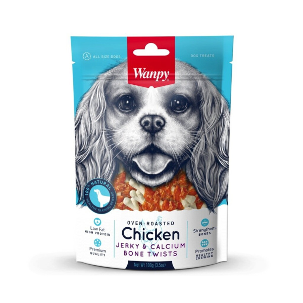 Prigrizek za pse kalcijeva kost s piščančjimi trakovi, Wanpy, 100 g
