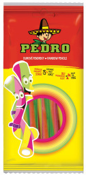 Sladkor, PŠENIČNA moka, glukozni sirup, *koncentrat grozdnega soka 3,7% = 15% sadnega soka, rastlinski olji (karitejevo, kokosovo), sredstvo za uravnavanje kislosti (citronska kislina, mononatrijevi citrati), sredstvo za ohranjanje vlage (glicerol), barvila (kurkumin, karmini, briljantno modro FCF), aroma, rastlinska koncentrata (hibiskus, korenje), želatina, emulgator (mono- in digliceridi maščobnih kislin), sredstvo za glaziranje: šelak.