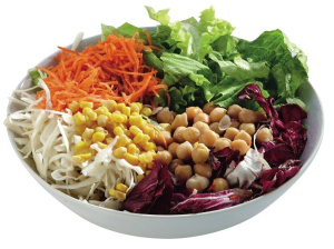 Zelje, koruza, čičerika (čičerika, voda, jodirana sol, antioksidant: askorbinska kislina), korenje, ZELENA solata, radič. Lahko vsebuje sledi glutena, MLEKA, RIB, JAJC, SOJE, ZELENE, GORČICE, OREŠKOV in SEZAMA.