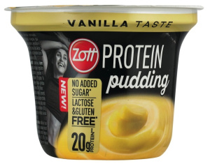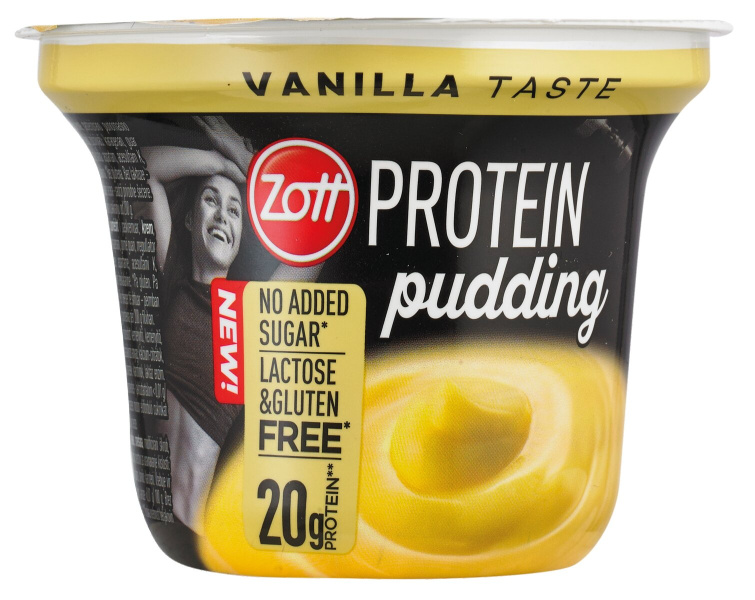 MLEČNE beljakovine, polno MLEKO, SMETANA, modificirani škrob, škrob, sredstvi za zgostitev: karagenan, guar gumi; sredstvo za uravnavanje kislosti: natrijevi citrati; sladili: aspartam, acesulfam K; aroma, barvilo: karoteni. Vsebuje vir fenilalanina.*Brez glutena. Brez laktoze – vsebnost laktoze <0,01 g/100 g. Brez dodanih sladkorjev – vsebuje naravno prisotne sladkorje. **Visoka vsebnost beljakovin – 20 g beljakovin v 200g pakiranju.