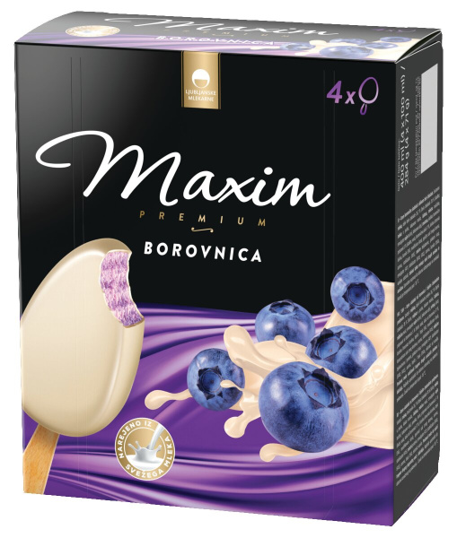 Sladoled na palčki, borovnica, Maxim Premium, 4 x 100 ml