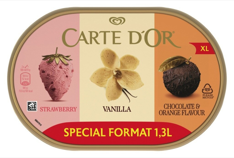 Sladoled, Jagoda, vanilija, čokolada in pomaranča, Carte D'or, 1,3 l