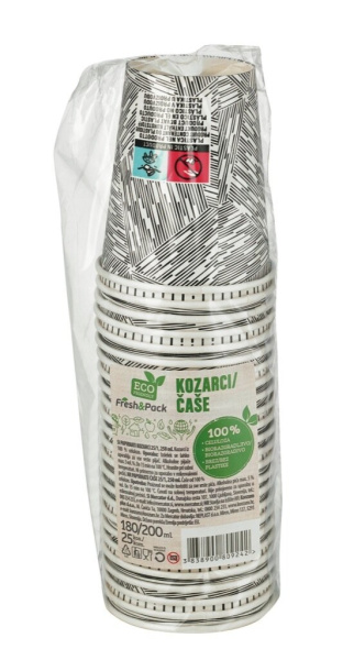 Papirnat kozarec, biorazgradljiv, Fresh & Pack, 200 ml, 25/1