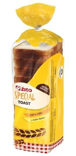 PŠENIČNA bela moka, voda, PŠENIČNI gluten, kvas, sladkor, sol, konzervansa (E281 in E200), PŠENIČNI škrob, emulgatorja (E471 in E481), suho PŠENIČNO kislo testo, sredstvo za uravnavanje kislosti E330, sredstvi za obdelavo moke (E300 in E920).