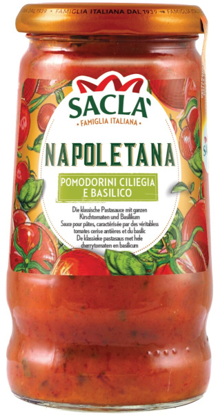 Paradižnik (nasekljan, sok, pasta), češnjevi paradižniki 16 %, sončnično olje, čebula, korenje, česen, ZELENA, bazilika 1,2 %, ekstra deviško oljčno olje, jedilna sol, koruzni škrob, sredstvo za uravnavanje kislosti: mlečna kislina.
