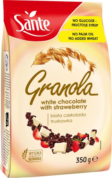 Kosmiči Granola, bela čokolada in jagoda, Sante, 350 g