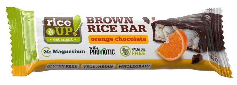 Polnozrnata riževa ploščica, oblita s temno čokolado z okusom pomaranče, RiceUP, 18 g