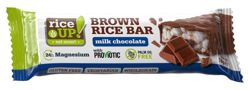 Polnozrnata riževa ploščica, oblita z mlečno čokolado, RiceUP, 18 g