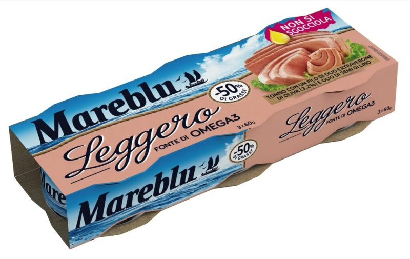 Tuna Leggero z Omega 3 v oljčnem in lanenem olju, Mareblu, 3 x 60 g