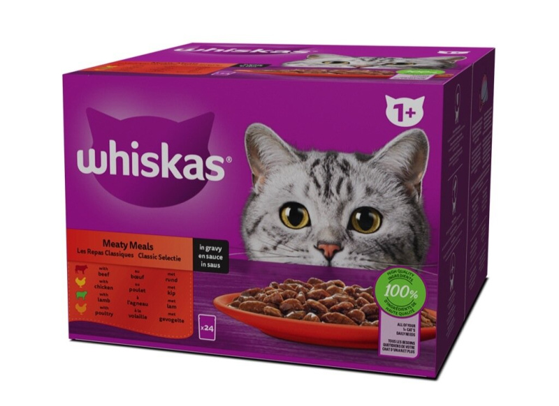 Hrana za mačke, govedina, piščanec, jagnjetina in perutnina, Whiskas, 24 x 85 g