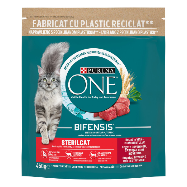 Briketi za mačke Steril z okusom govedine, Purina One, 450 g